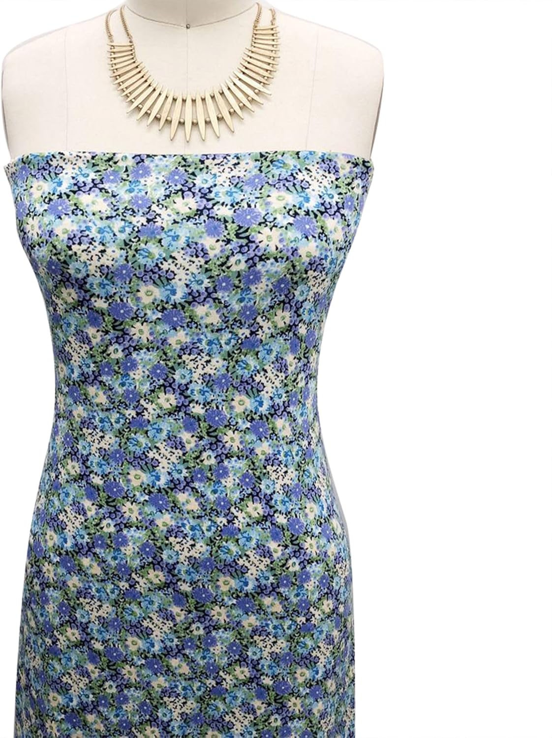 Brand: InMemory Color: Lavender Aqua Size: 1 Yard - 60" Wide Material: Rayon, Spandex Fabric Type: Printed Rayon Spandex Jersey Knit MATERIAL - The fabric blends of 95% rayon and 5% spandex. FEATURES - This fabric is comfortable and stretchy, offering moisture-wicking properties, minimal wrinkling, vibrant color retention, and a soft hand feel, making it versatile for various styles and occasions while being easy to sew and layer and providing good recovery to maintain shape over time. ITS USES - The fabric can be used to create a variety of finished products, including fitted tops, leggings, casual dresses, and skirts for apparel; sports bras and yoga pants for activewear; accessories like soft headbands, lightweight scarves, and stylish tote bags; school projects, including costumes and sewn items like pencil cases; and children's clothing such as comfortable play dresses and soft pajamas. TRENDY AND FASHIONABLE- Stay on-trend and be amazed with our wide range of colors that perfectly match current fashion trends in any season. The fabric is available in continuous cuts, so you can get the exact length and size needed for your designs and crafts. COLOR - Different monitors cause photos to look paler or darker, and we can't guarantee that the actual fabric will be as exact as the one in the photo. We highly suggest getting color cards or sample cuts to see the actual color of the fabric.
