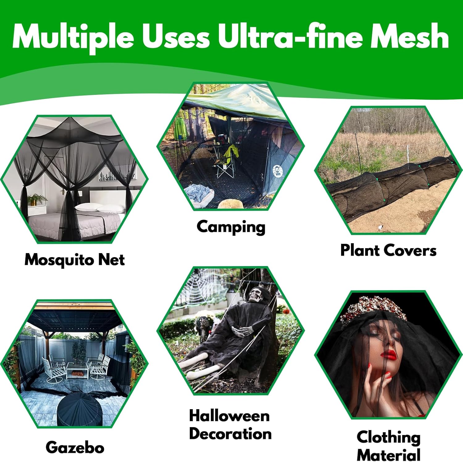 Brand: InMemory Color: Black Item Weight: 7.77 Kilograms Product Dimensions: 2 Pack 10 x 20 FT Package Includes: Each package contains 2 pieces of black insect net,which is very suitable for pasture orchards and gardens,and is extremely light,directly covering the plants will not cause a burden Size: The mosquito net measures about 10 x 20 feet.The size is large enough to meet your use needs,and it can also be flexibly cut into different sizes as needed to provide more effective protection Material: Our garden mesh netting is made of high-quality mesh and 40D polyester fabric.The fabric is soft,drapes well,is waterproof and sun-proof,and is suitable for indoor and outdoor use;our patio screen mesh is sturdy and not easy to deform or break,and has a long service life Ultra-fine mesh: The garden net barrier has an ultra-fine mesh that allows sunlight,rain and air to pass through easily without interfering with the photosynthesis of plants.No need to remove it for watering or applying liquid feed.Breathable,odorless,flexible,easy to use in daily life Multiple uses: You can hang this garden netting on your patio,balcony,window,parasol,gazebo,porch,or bed to avoid mosquitoes or other insects.This soft mesh can also be used as clothing material,or as decoration for weddings,birthdays,and holiday parties