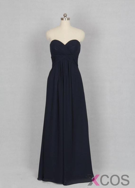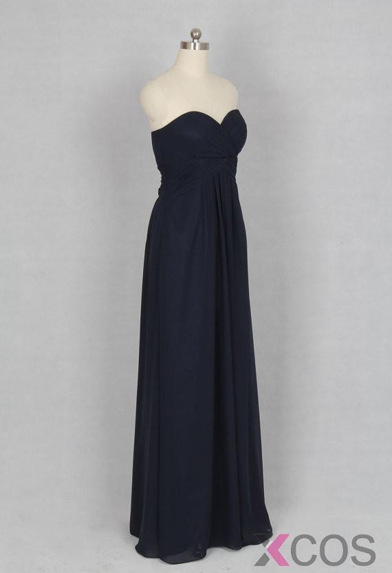 Black Sweetheart Pleats A Line Chiffon Long Bridesmaid Dress CHBD-80070