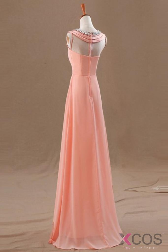 • Blush Pink Chiffon Empire Long Prom Evening Dresses ED0706