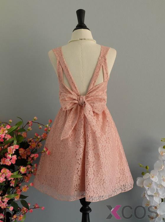 • Cute A-line Knee-length Pink Chiffon Prom Dress With Bowknot