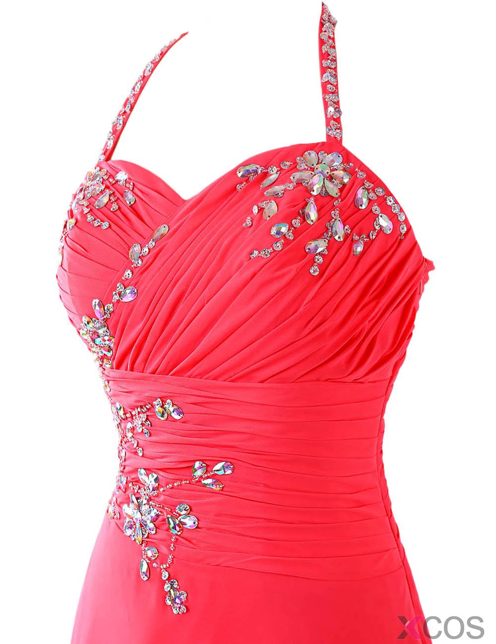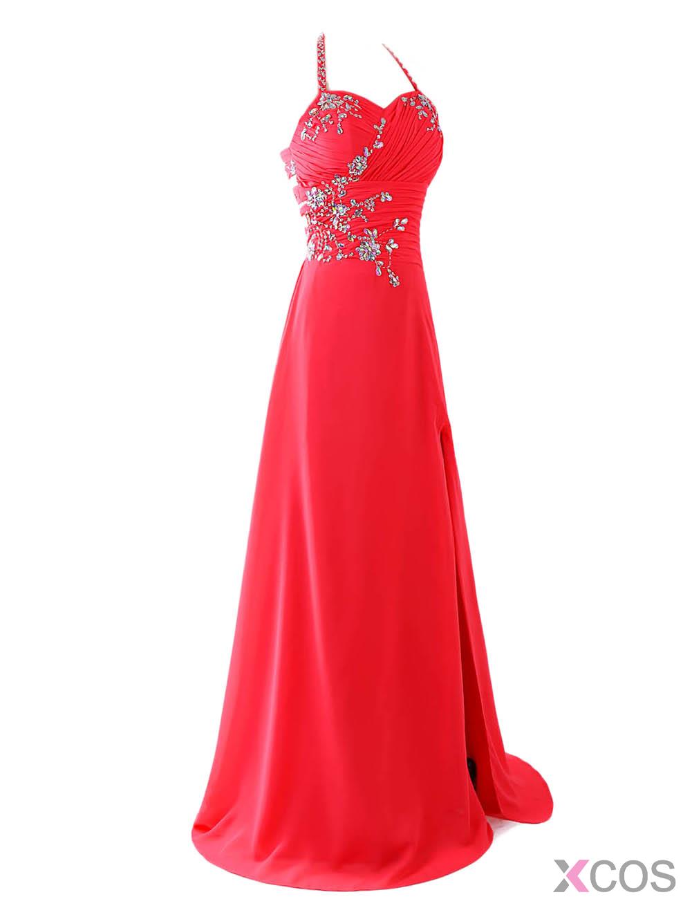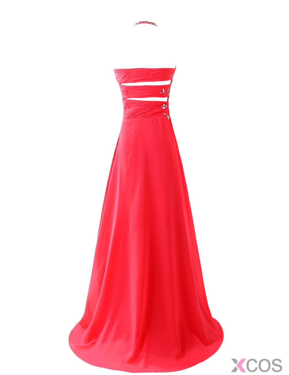 • Gorgeous A-line Halter Chiffon Red Long Backless Bridesmaid/Prom Dress With Beading