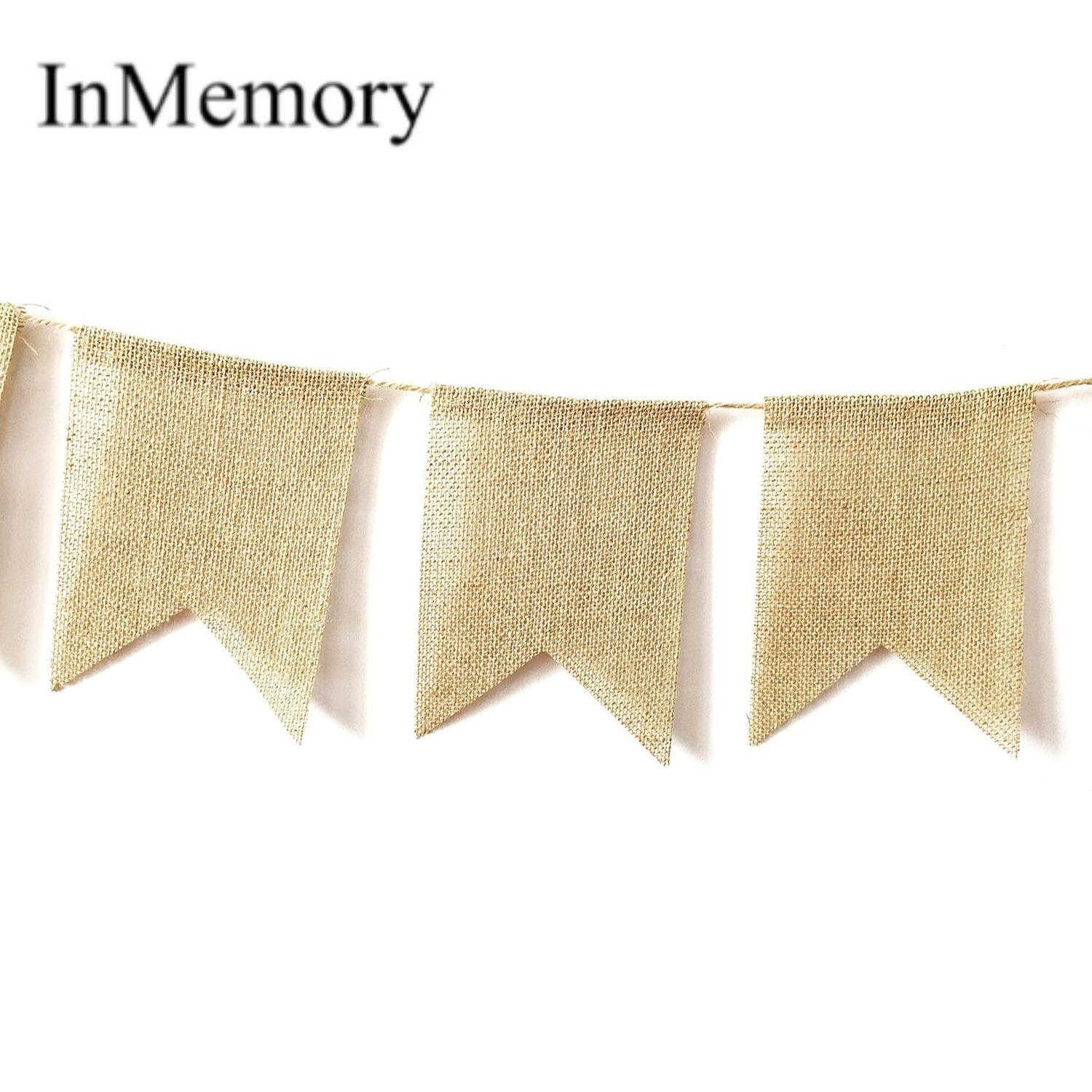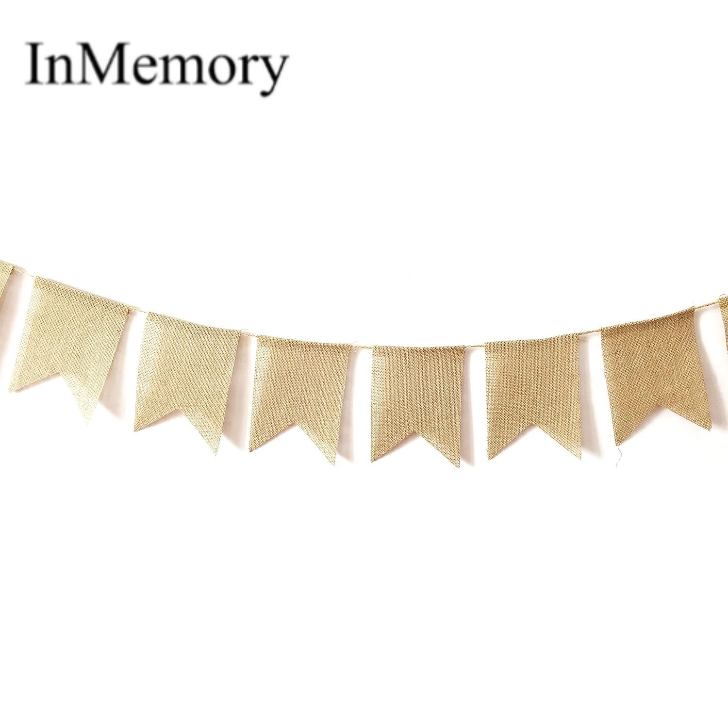 Brand: InMemory Color: Brown Material: Burlap, Jute Item Length: 180 Inches Shape: Swallow-Tailed Blank 100% Jute The Package Including 15 Blank Burlap Bunting Banners With Natural Jute Cords. Each Flag Size Is 7" H x 5" W, Total Width Is 15 Feet, Has Extra Jute Cords On Both Ends. The Flags Are Perfect For Painting, Sticker On Them. Great For Wedding, Party, Baby Shower, Home Decoration.