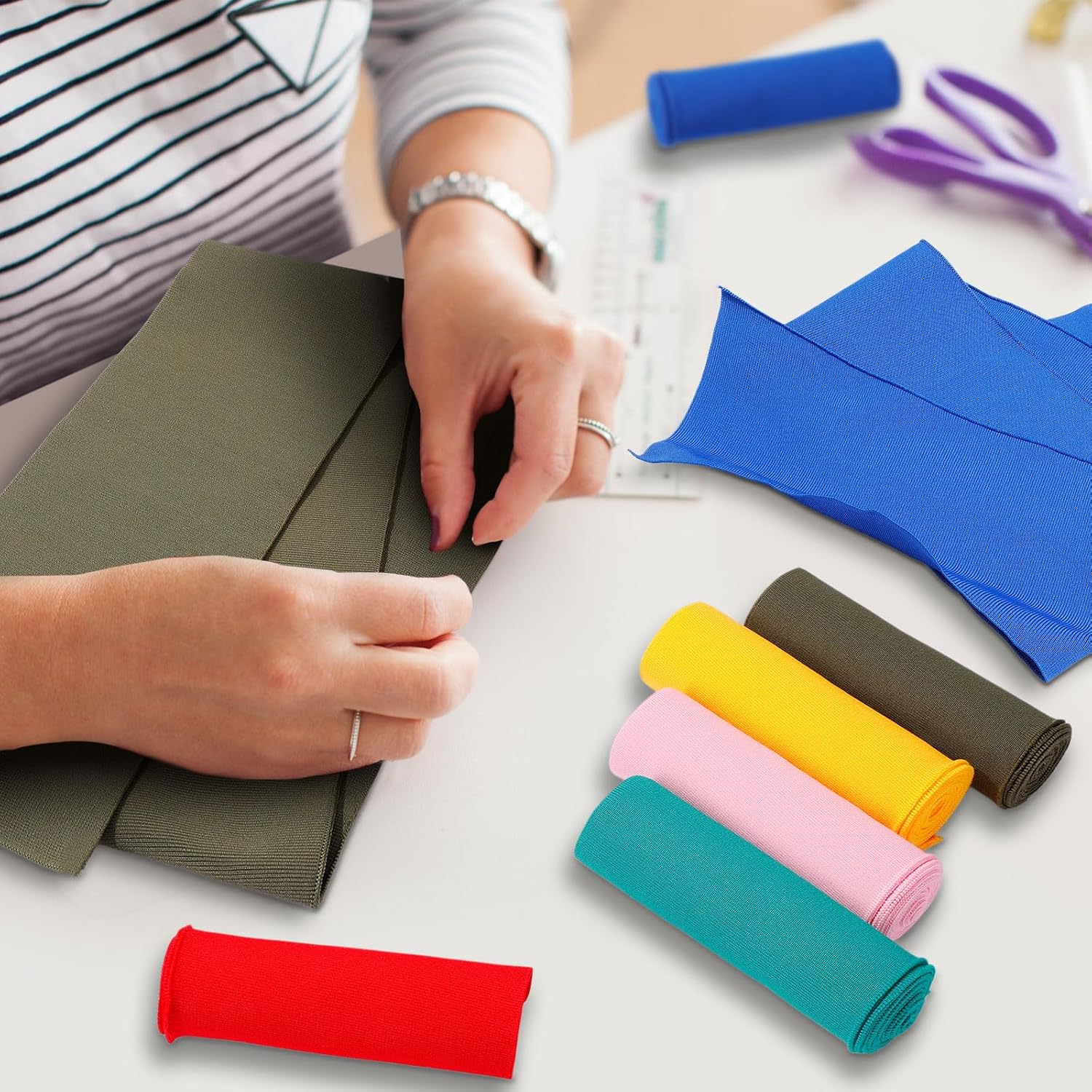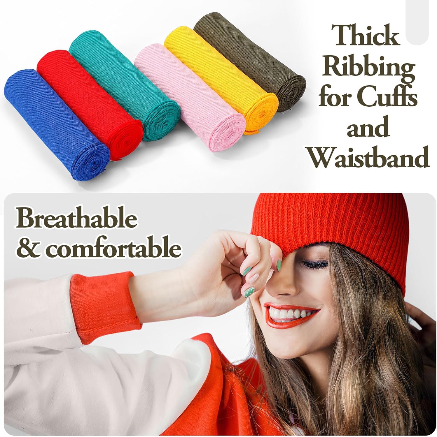 Brand: InMemory Material: Cotton, Spandex Color: Red, Pink, Green, Dark Green, Blue, Yellow Size: 38 x 6 Inches 6 Colors: our knitted ribbing cuff material is available in 6 attractive colors: red, pink, green, dark green, blue, and yellow; These classic colors are adaptable and easy to pair with various outfits for a fashionable look Quality Material: our ribbed knit fabric, made of 95% cotton and 5% spandex, is soft, comfortable, and stretchy; It retains its shape, ensuring durability and long term use without constraining your wrists Versatile Design: the classic rib fabric is suitable for spring and autumn clothes, including sportswear, sweaters, and hoodies; It can also be applied to rejuvenate and customize retro jackets by replacing cuffs and waistbands. Generous Size: each set includes 6 pieces of tubular ribbing cuff fabric in different colors; These ribbed cuffs are 38 inches/ 95 cm long and 6 inches/ 15 cm wide, providing plenty of material for numerous sewing applications Wide Applications: this ribbed edge trim fabric is suitable for repairing cuffs, waistbands, collars, and other sewing crafts; It is appropriate for DIY tasks, such as sewing sweaters, coats, and jackets; Cut to the desired length for customized use based on your requirements