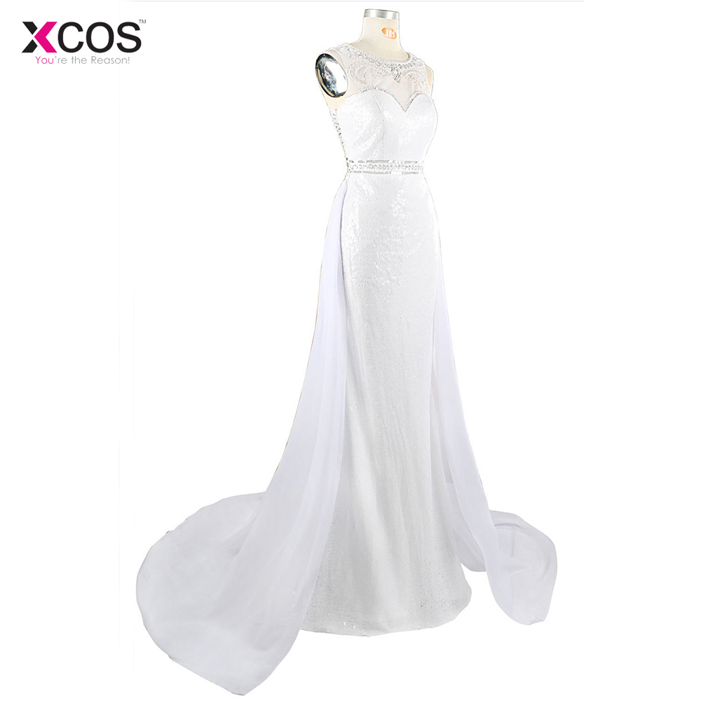 Latest Elegant Crystal Beaded Evening Dresses Sweetheart Sheer Illusion Sequins Skirt White Chiffon Mermaid Long Prom Gowns 2018