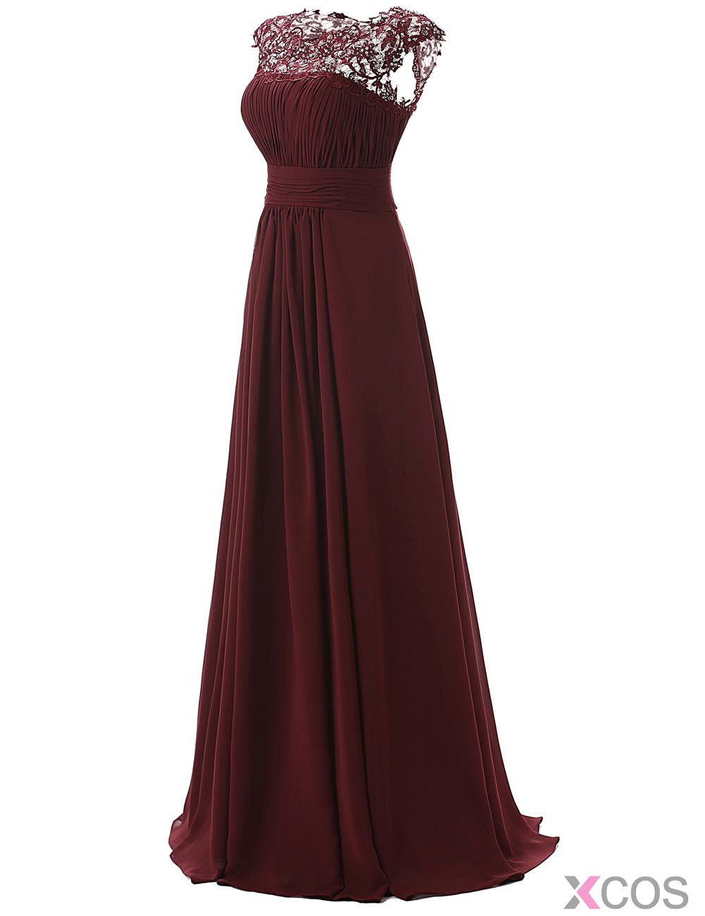 Modren Scoop Appliques A-line Burgundy Prom/Party Dress