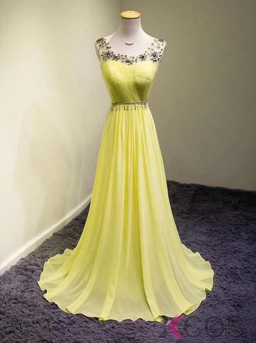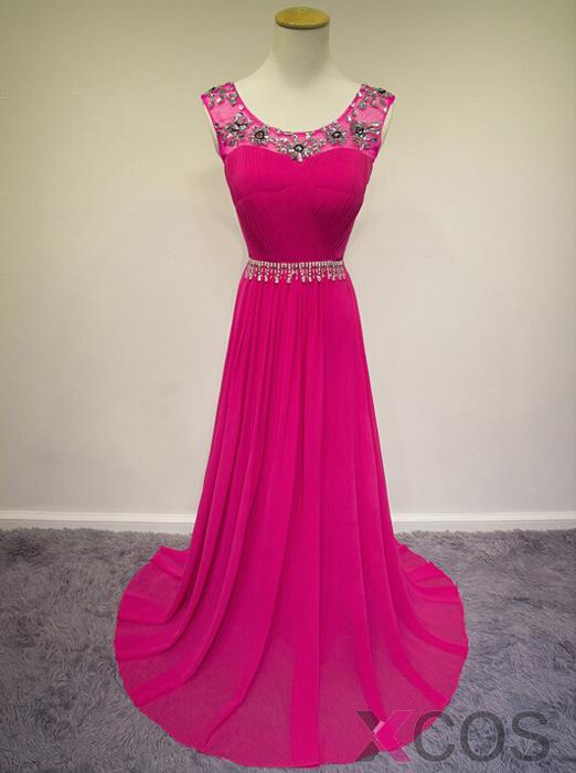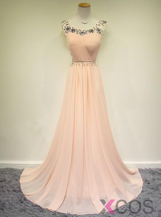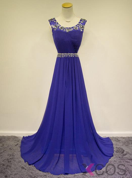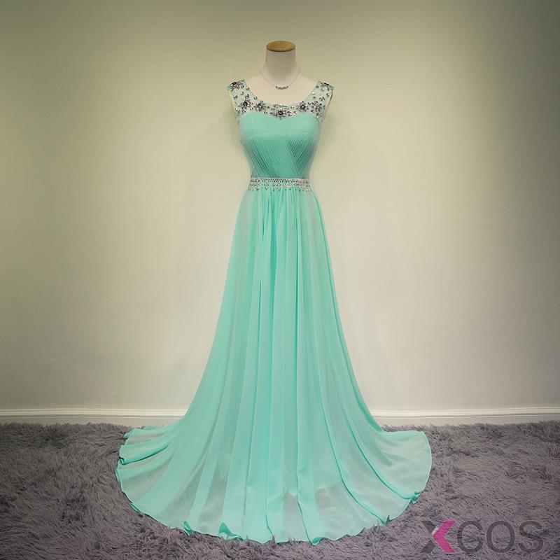 • Simple Dress Popular Long Beading Scoop Chiffon Long Prom Dresses/Graduation Dresses/Evening Dresses CHPD-7010