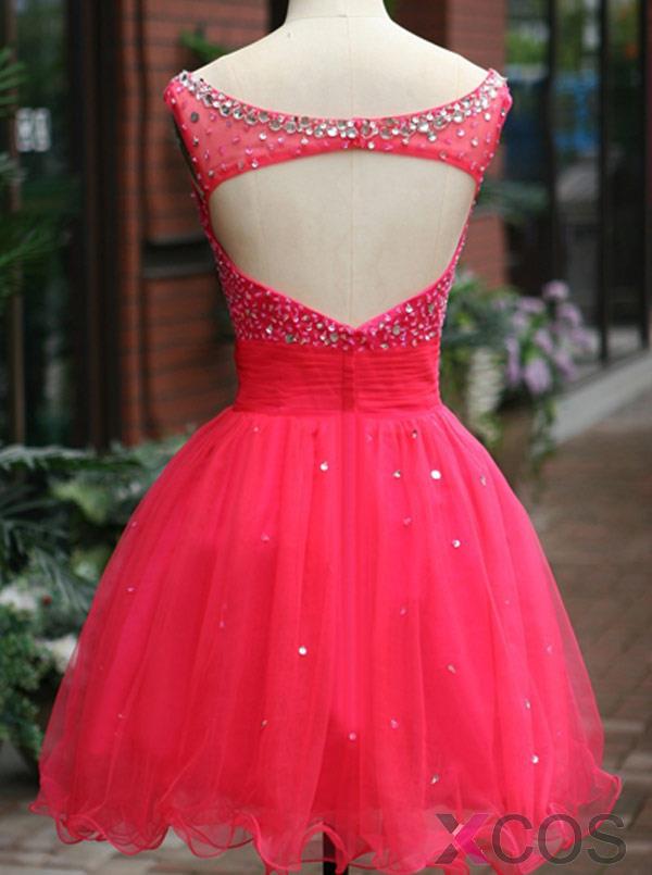 • Simple Dress Short Scoop Beading Tulle Backless Tulle Prom Dresses/Homecoming Dresses  TUPD-7158