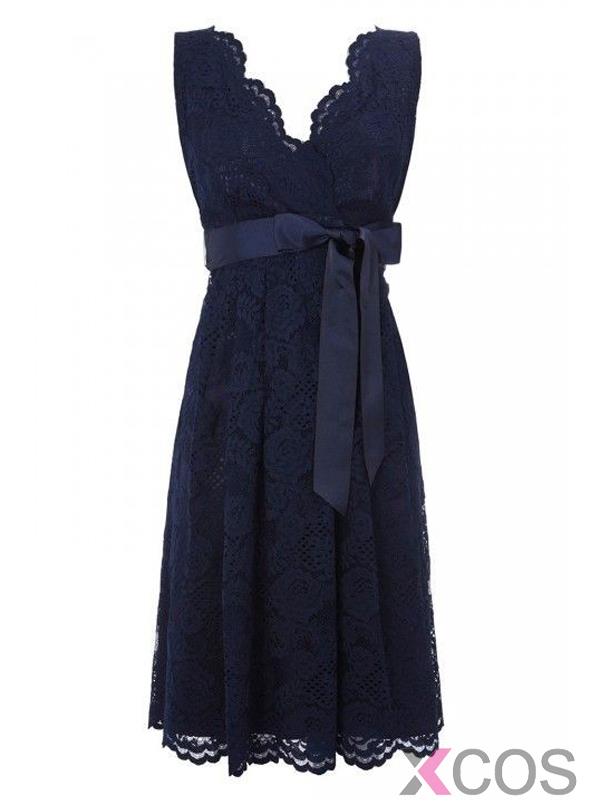 Simple Dress V-neck Navy Lace Sash Bridesmaid Dresses/Party Dresses LABD-7177