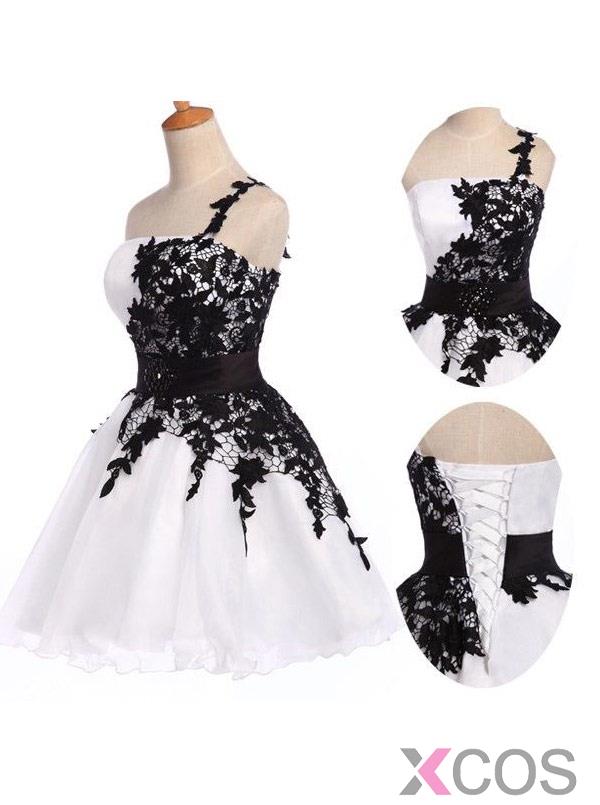 Simple-dress Hot-selling A-line Black Lace Short/Mini White Homecoming Dresses/Party Dresses TUHD-7654