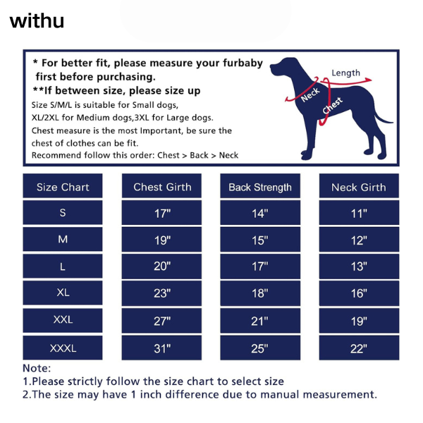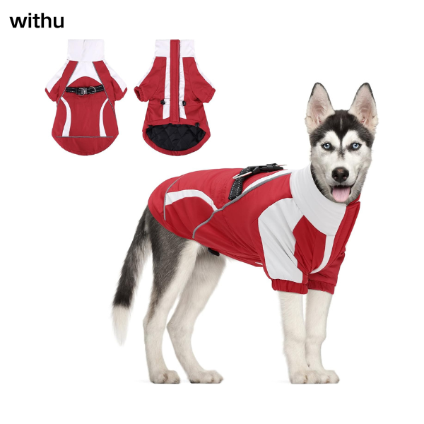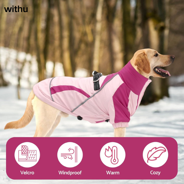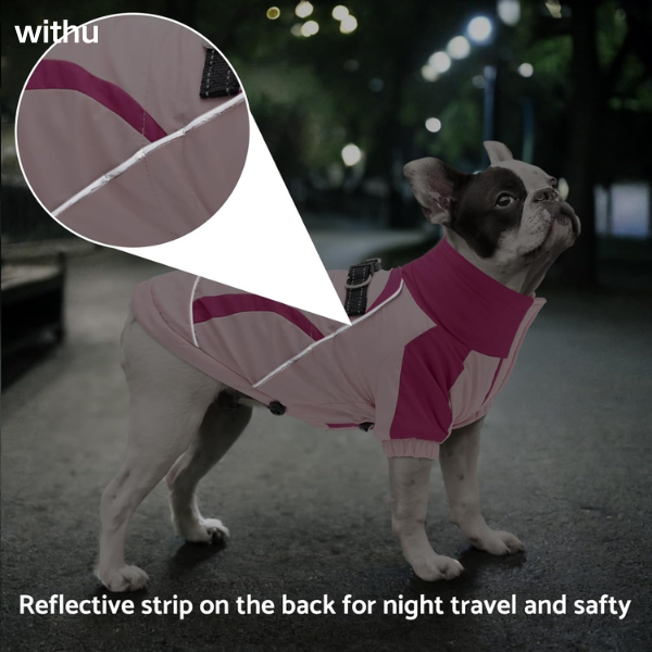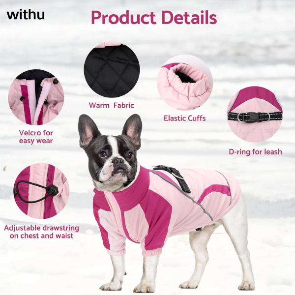 Brand: withu Color: Pink / Black / Blue / Red Size: S-XXXL ( Please refer to the size chart for details ) Material: Polyester Neck Style: Turtle Neck Water Resistance Level: Water Resistant Closure Type: Hook & Loop Warm WindProof Dog Winter Coat: This dog winter coat is made of polyester fabric. The outer layer is windproof and water-resistant, allowing your dog to play freely even in rainy and snowy weather. The interior is thickened warm fabric, providing extra warmth and enabling your furry friend to enjoy warmth and comfort in the severe cold of winter. Safety Reflective Strip Design: This dog winter coat is equipped with a reflective strip on the back, boosting the visibility of your dog in low-light situations and providing additional safety for your dog when outdoors, especially at night or during a journey. Convenient Built-In Harness: This dog winter jacket is equipped with a built-in harness. The reinforced high-strength strap makes it more sturdy and durable. While making it difficult for the dog to break free, it ensures maximum comfort for the dog. The convenient D-ring design means you don't need to carry an extra collar when walking your dog outdoors. Just hang the leash on the coat and enjoy your outdoor walk with your furry friend. Comfortable Adjustable Drawstring Design: Our dog winter coat boasts an adjustable chest and waist drawstring design. This allows it to better fit dogs of different body sizes. The adjustable design makes the clothing fit the body of pets of different sizes more closely. It effectively resists wind and snow in cold weather, keeping the dog warm while increasing the dog's comfort. Hook and Loop Closure Design: This dog coat is designed with a convenient Hook and Loop Closure for easy putting on and taking off, saving your precious time dressing your little one.